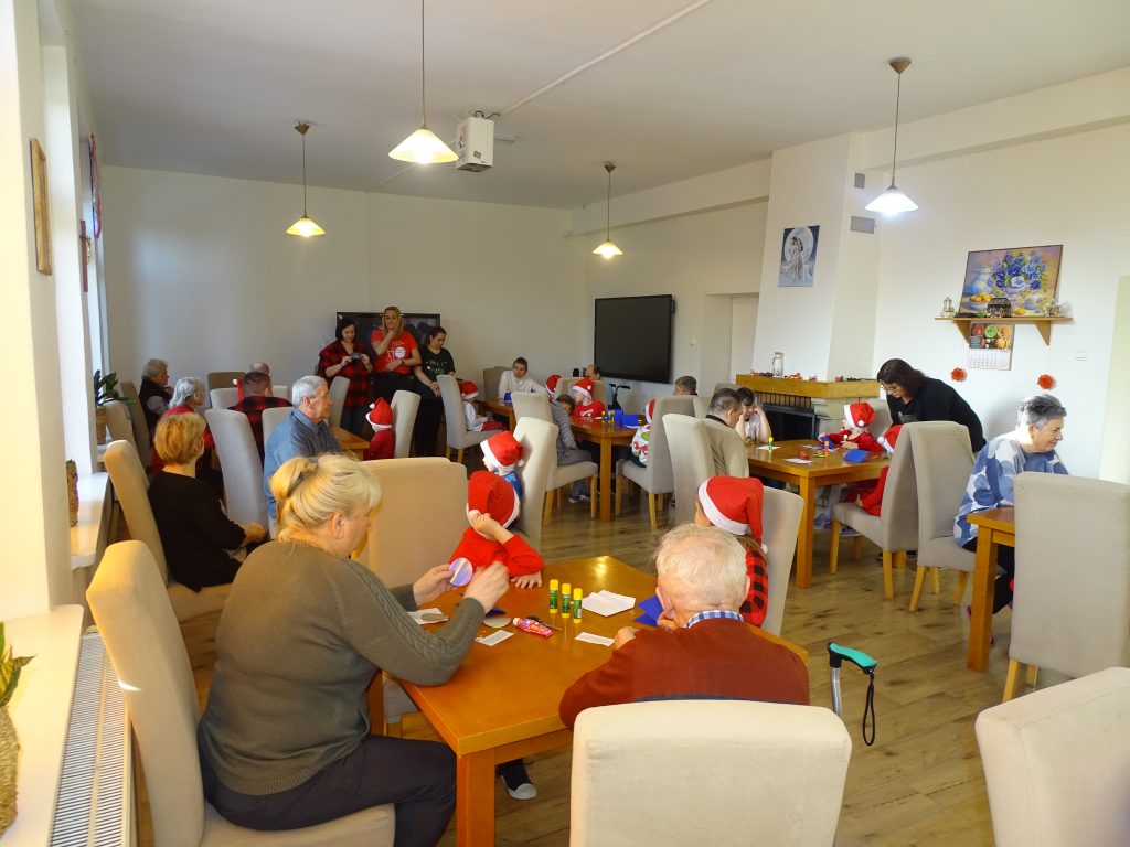 Dzieci zaangażowały uczestników we wspólne zabawy taneczne, wspólne z nimi stworzyły piękne kartki świąteczne. Później była chwila na poczęstunek i zabawę w Sali Doświadczania Świata.